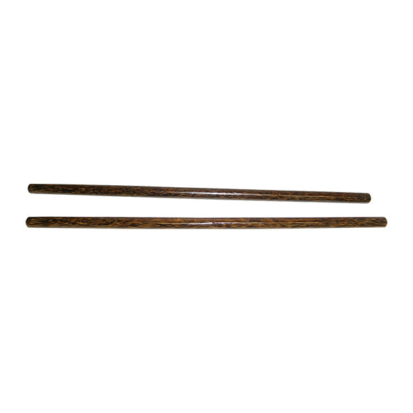 Matched pair of Bahi hardwood Escrima sticks. 28" x .9" (7/8"-1" diameter) sticks are constructed of authentic native Filipino Bahi hardwood (noted for its dark brown color and unique black grain). Beautiful and very rare. This is a very hard and heavy fighting stick. Select straight pieces with a smooth finish and beveled ends. Very rare. Limited supplies!