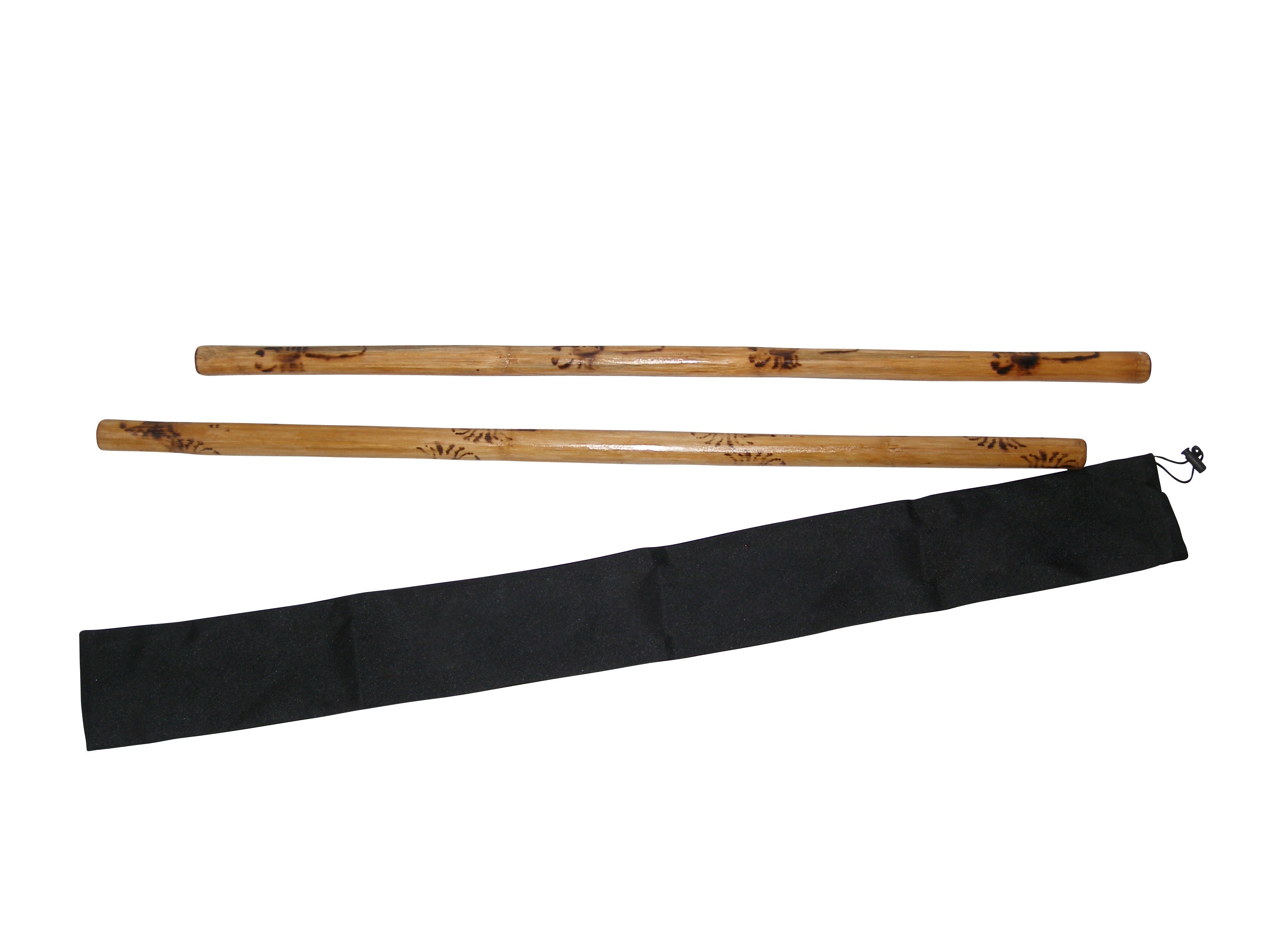 Imported directly from the Philippines! Set includes a matched set of TWO STICKS and Carry Storage Bag. These authentic sticks are handcrafted in the Philippines by craftsmen of Cebu. Each stick features a light traditional burn pattern and clear finish. Measures approx. 28" long and approx. 7/8" thick. These sticks are very durable! Great for all around training and demonstrations.