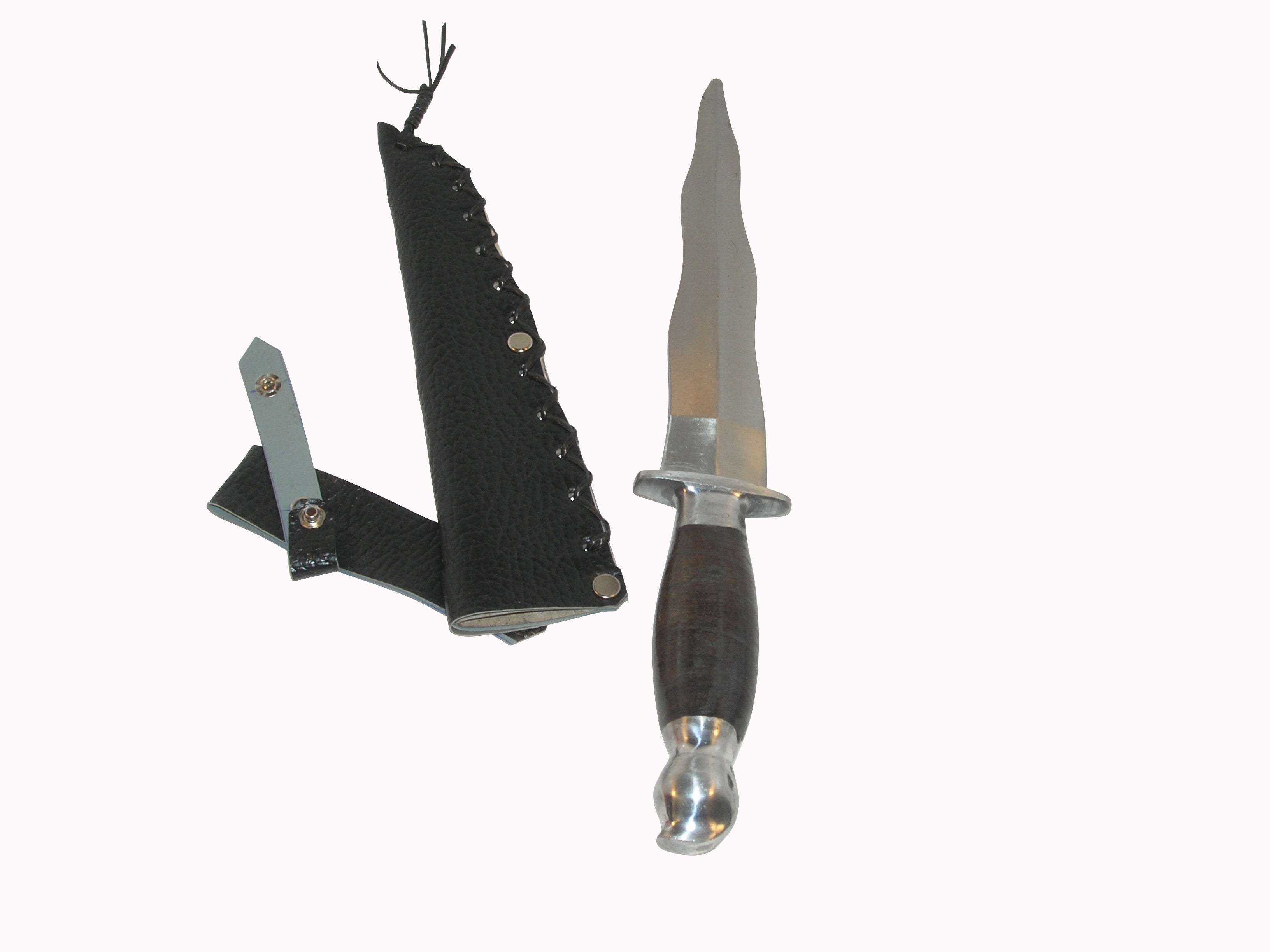 Heavy-duty hand crafted practice dagger is built to last a lifetime! Made in the Phillipines; it features a 8 inch filipino kris style metal blade with dull edge & rounded tip; and round wood handle. A favorite of Kali Arnis Escrima & JKD trainers. 13 inch overall length. Comes with faux leather case with belt loop. Note: Because these are handcrafted; there may be slight variations from the stock photograph. This will not affect performance or durability!